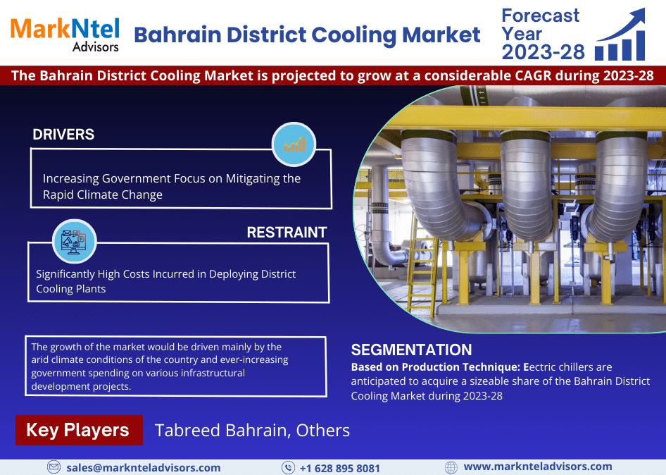 As per recent study by MarkNtel Advisors The Bahrain District Cooling Market is projected to grow at a considerable CAGR during the forecast period, i.e., 2023-28.