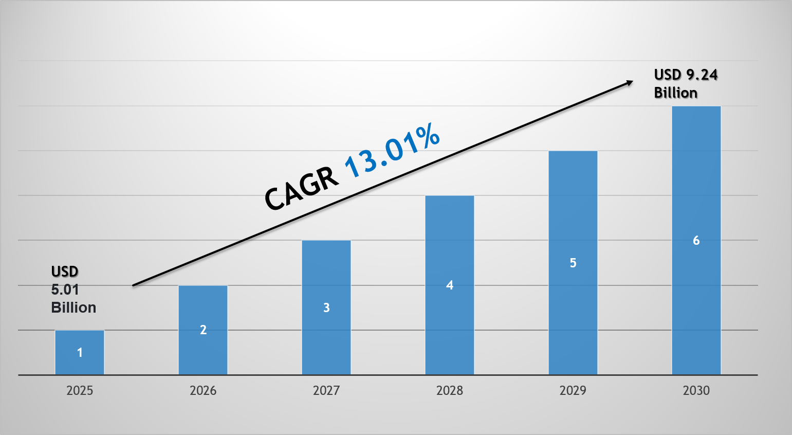 The Global Respiratory Pathogen Testing Kits Market size is valued at around USD5.01 billion in 2025 and is projected to reach USD9.24 billion by 2030. Along with this, the market is estimated to grow at a CAGR of around 13.01% during the forecast period, i.e., 2025-30. This consistent growth is primarily driven by the prevalence of respiratory diseases across the globe, advancements in diagnostic technology, and growing public health awareness and investments.