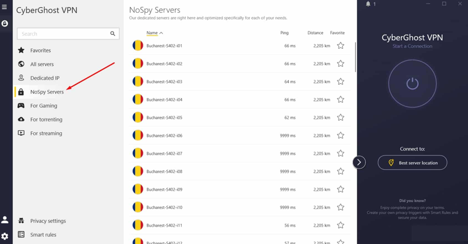 CyberGhost features user-friendly interfaces with specialized Romanian servers.
