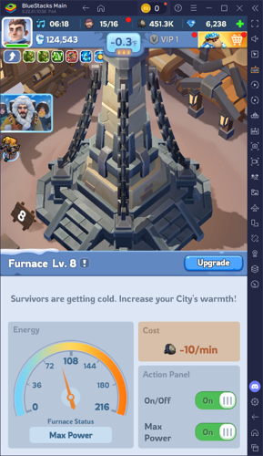 Strategic resource collection and balanced development are key—early focus on gathering materials will keep you prepared for future upgrades. Staying ahead of the harsh cold conditions is crucial, as failing to do so could jeopardize your survivors' safety when the next blizzard strikes. Remember, a well-upgraded Furnace ensures your city’s resilience and growth throughout your gameplay experience. Play Whiteout Survival seamlessly on PC or laptop with BlueStacks for optimal performance!