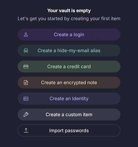 Upon logging into Proton Pass for the first time, you'll be prompted to customize your experience. The interface offers theme options—such as a dark mode, which I selected—along with an auto theme that adjusts based on the time of day, providing a personalized and comfortable user interface.